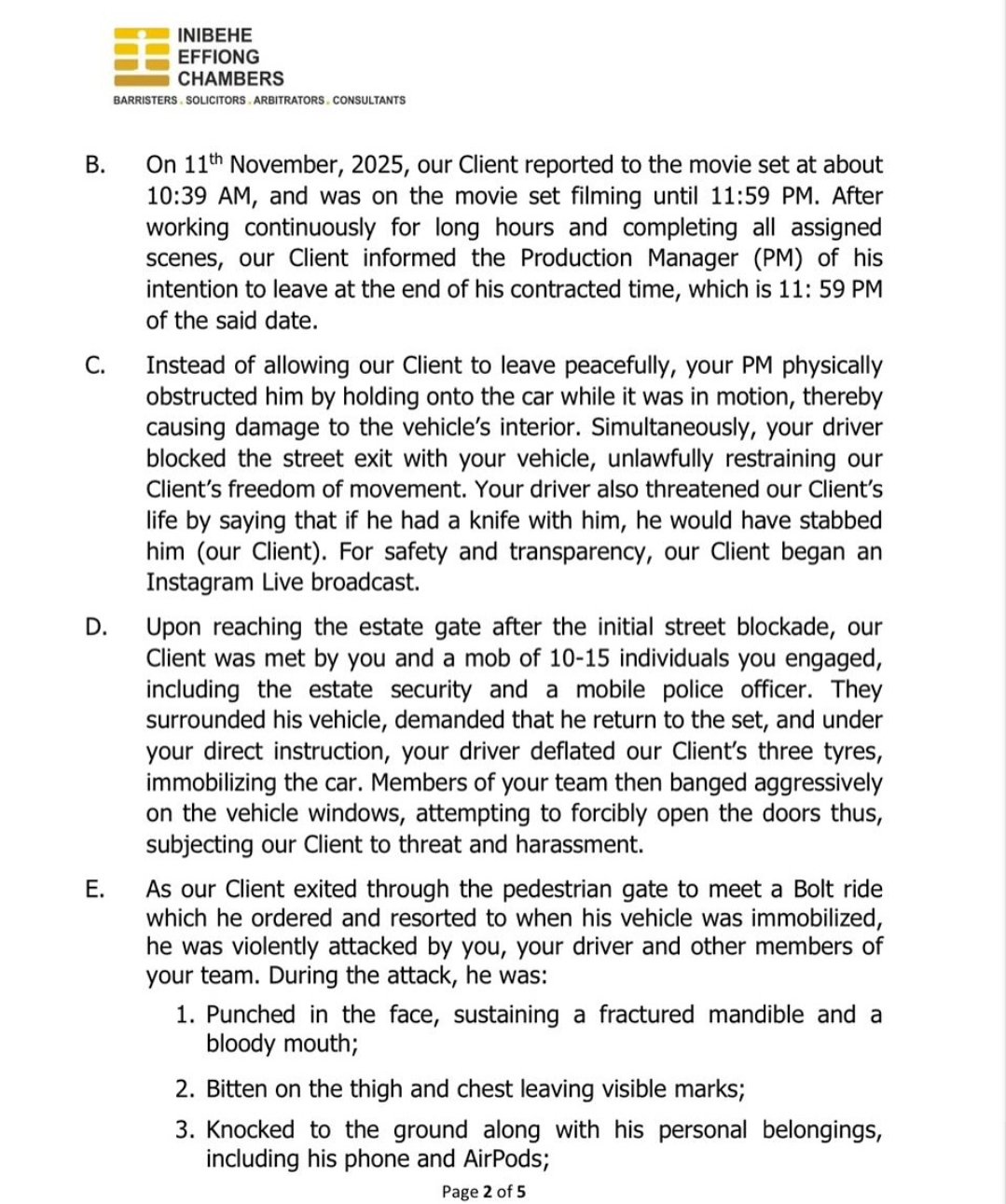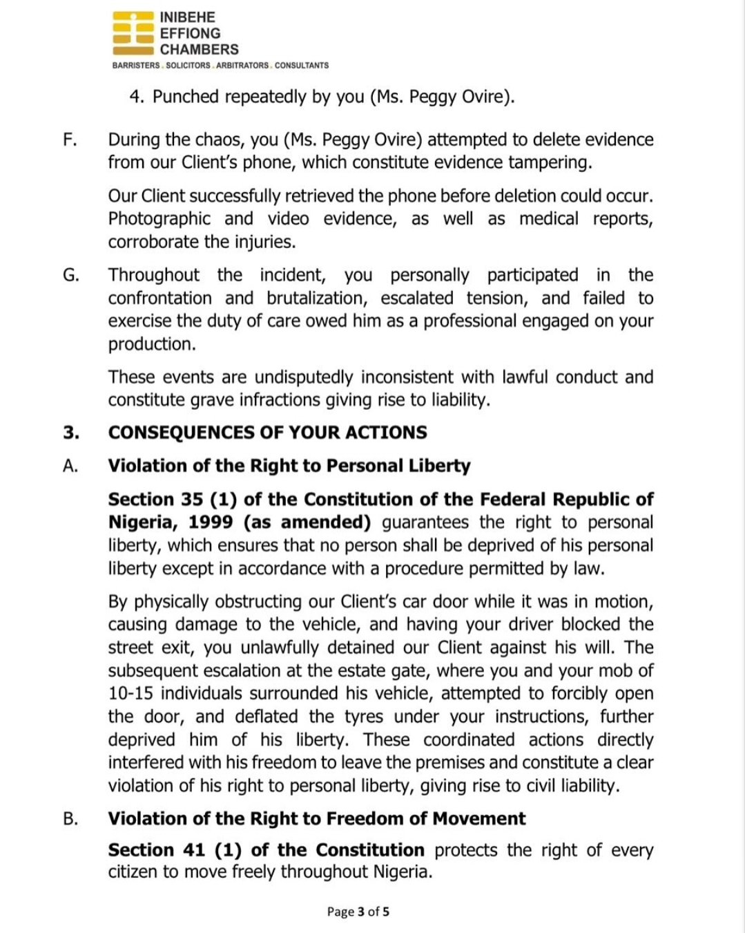 Arimoro captioned the put up: “@peggyovire PRE-ACTION NOTICE. In gentle of the incident referenced in this correspondence, you’ve been served. Kindly forward all responses to my solicitors as indicated.”