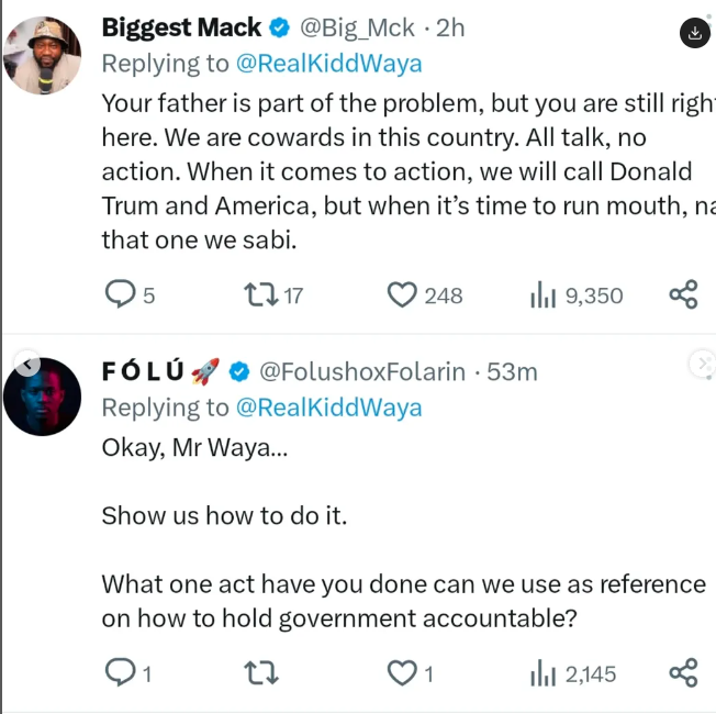 One other user challenged Kiddwaya straight, asking him to show what private steps he has taken to defend up the authorities to blame.
