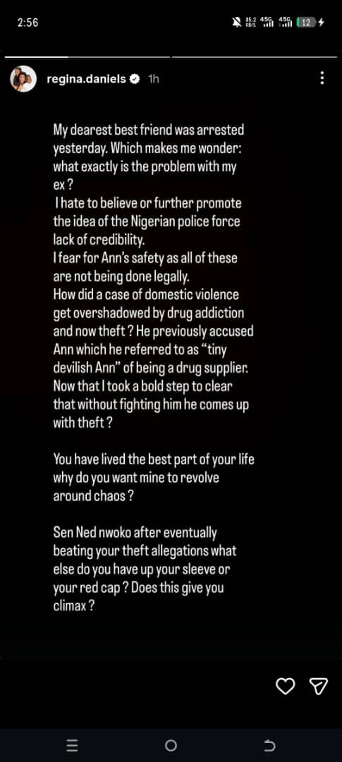 Twinny News reports that in a chain of Instagram fable posts shared on Tuesday, Regina wondered the motive within the wait on of Ann’s arrest and linked it to her inner most factors with her estranged husband, Senator Ned Nwoko.